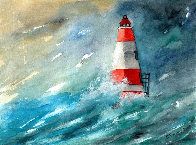 Buy this abstract artwork Lighthouse in wild waves by Gertrud Premke on canvas, ArtFrame, poster and wallpaper, printed on demand in high quality.