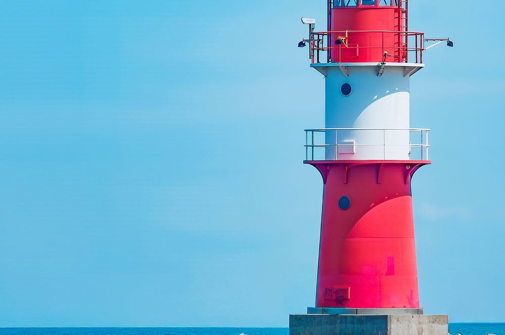 Lighthouse - a landmark and a very important symbol in seafaring. This lighthouse is located in Warnemünde harbour.