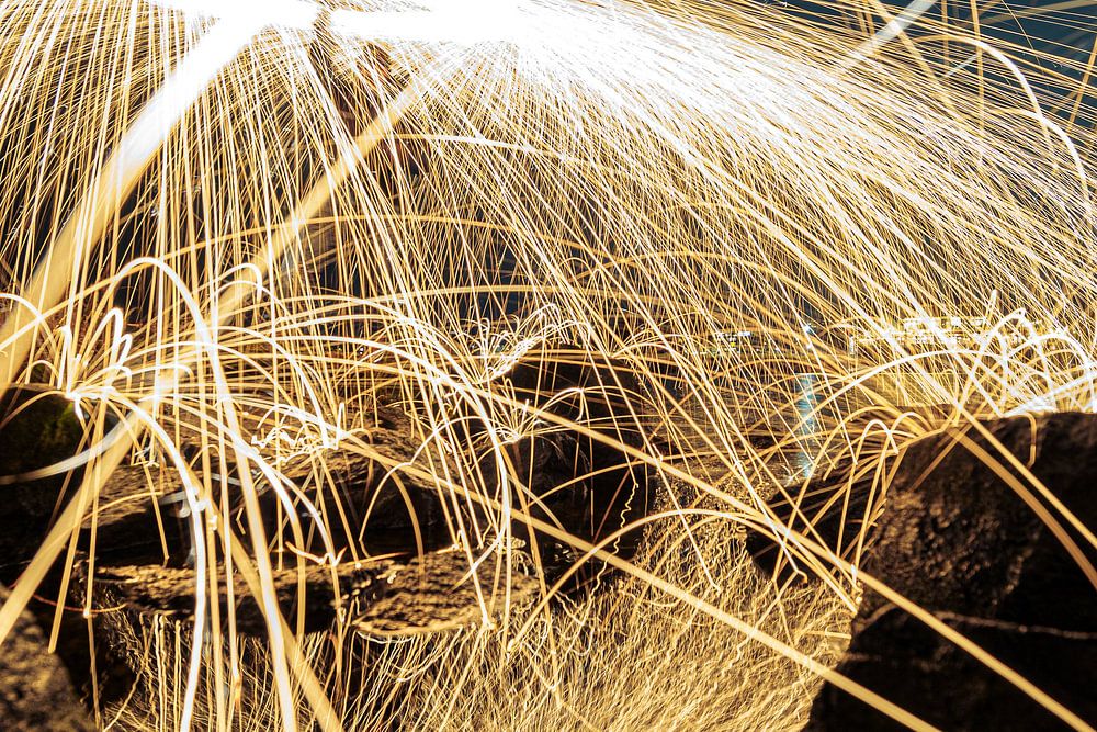 The swaying with burning steel wool gives an effect as if the fire is raining. A form of photography with spectacular photos and full of dynamics.