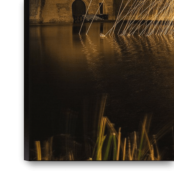 Lightpainten op de drijvende brug van het monument aan he ravelijn in Bergen op Zoom. Gaaf eraan is de reflectie in het water/