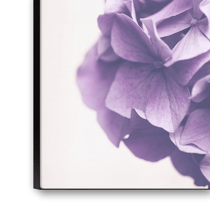 Photography of pretty lilac-coloured Hydrangea flowers on a soft pink background.