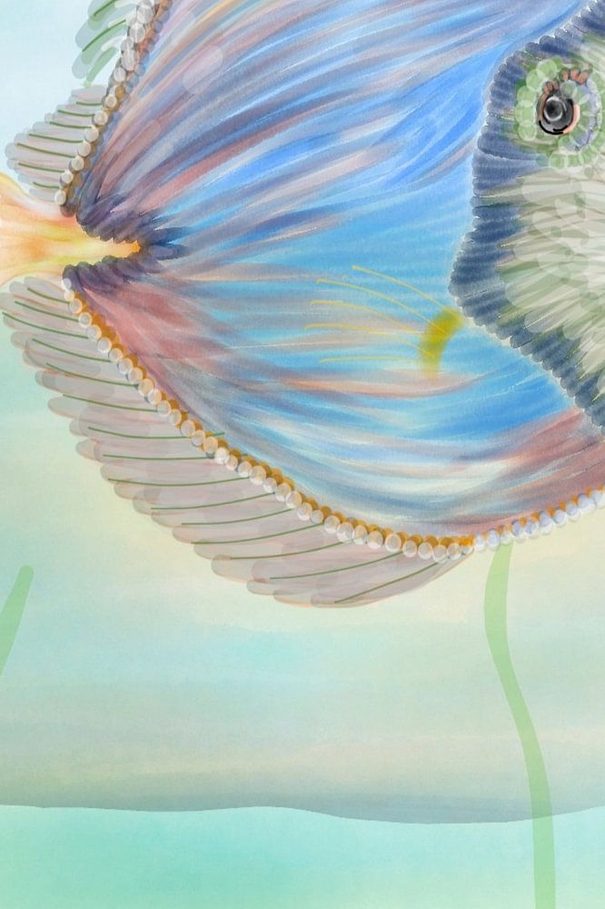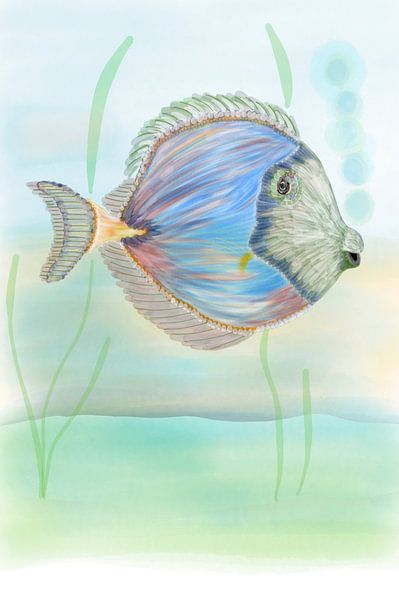 Buy this digital art artwork Line drawing artwork VIS in the colours blue and green by Studio Spanjersberg as a reproduction on canvas, ArtFrame, poster and wallpaper, printed on demand in high quality.