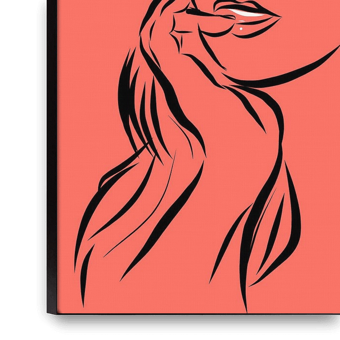 On the iPad outlined portrait of a woman on a colored background. The color is Pantone color of the year 2019, Living Coral. Vivid and dynamic black lines. Line drawing.