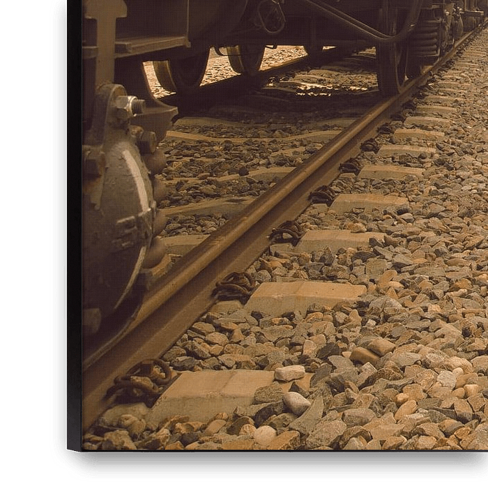 Photo "Lines of wagons": This intriguing photo shows long rows of freight wagons in the port of Rotterdam. Taken between two of these impressive rows, the wagons form a powerful composition of straight lines and shapes.