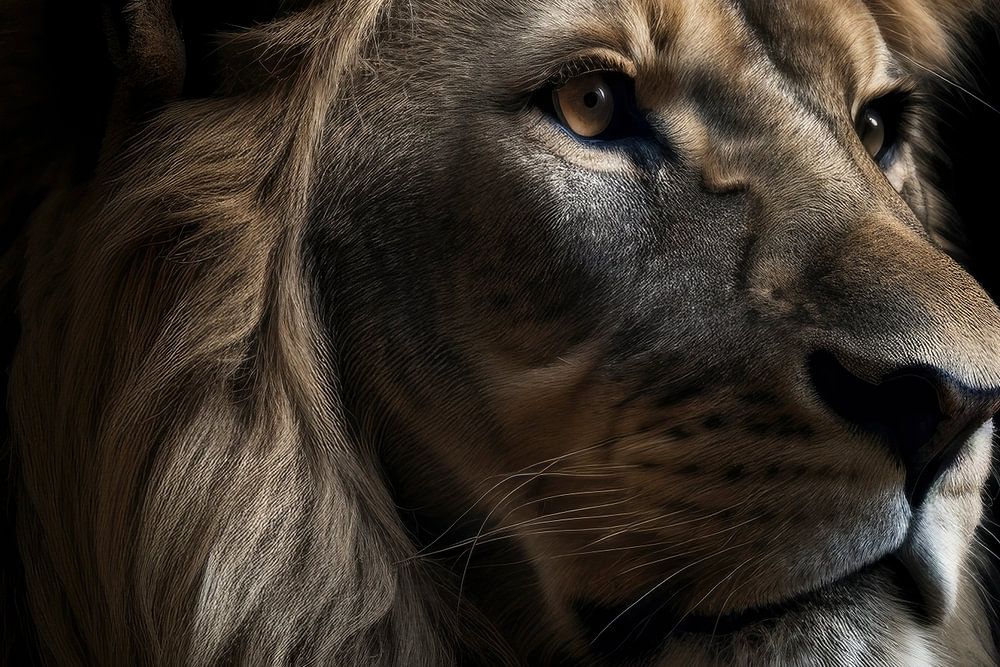 This beautiful portrait of a Lion is a real eye-catcher for your wall. The dark background ensures that the focus is fully on the animal and its unique features and appearance are shown to their full advantage. Whether you are a lover of wildlife, pets, or nature in general, this photo is a perfect addition to your interior. It is a photo that will stand the test of time and is a valuable addition to any art collection. Order this impressive photo today and enjoy the beauty of nature in your own home.