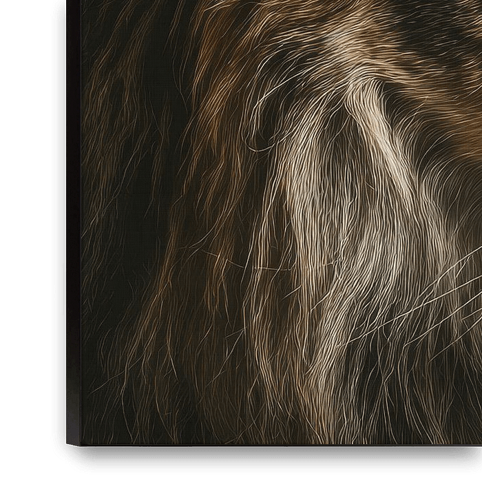 This majestic image shows a lion in profile, bathed in warm light that beautifully accentuates his mane and facial expression. The dark background enhances the drama and makes each hair stand out, while his steady gaze exudes a sense of wisdom, strength and calm leadership. The combination of realistic texture and sophisticated lighting…