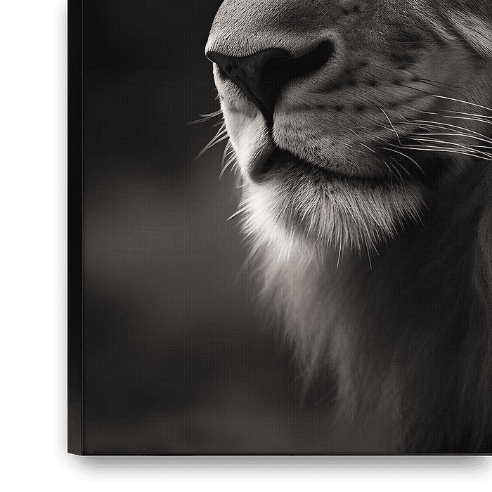 Buy this lion art Lion in focus, black and white V3 by drdigitaldesign on canvas, ArtFrame, poster and wallpaper, printed on demand in high quality.