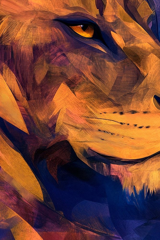 The lion rises majestically with its regal expression, surrounded by lively, warm colours that radiate a powerful energy. The harmonious fusion of yellow and blue gives the picture depth and dynamism. Ideal for the living room, it attracts everyone's attention and adds a touch of wildness and grace to any room.