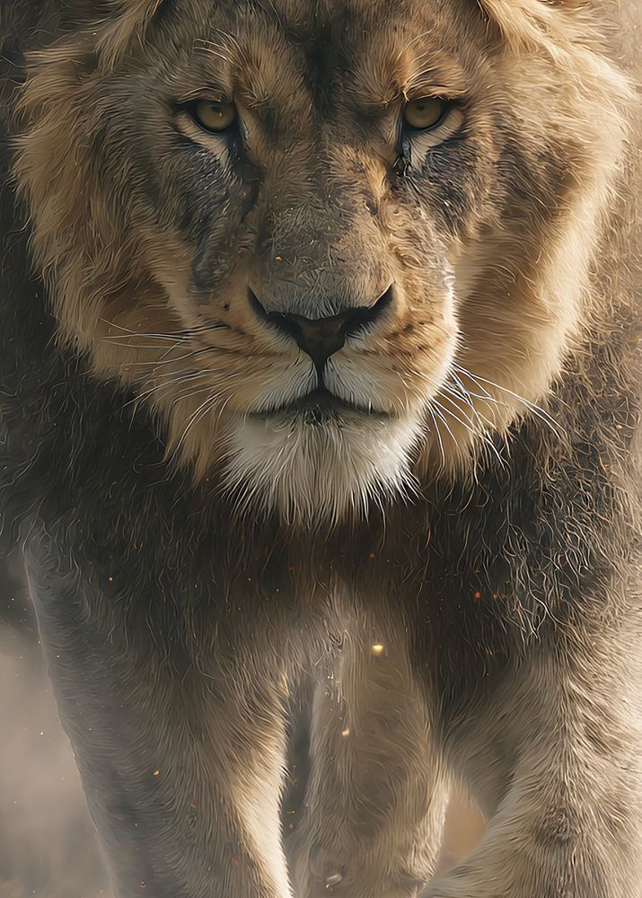 With this work, I wanted to reinterpret the majestic power of the lion - not just as the king of beasts, but as a symbol of inner strength, determination and dignity. The depiction in the haze of a luminous fog is intended to show that true greatness does not come across loudly, but with calm, depth and presence. Here, the lion symbolises the courage to go one's own way - even in the face of uncertainty.