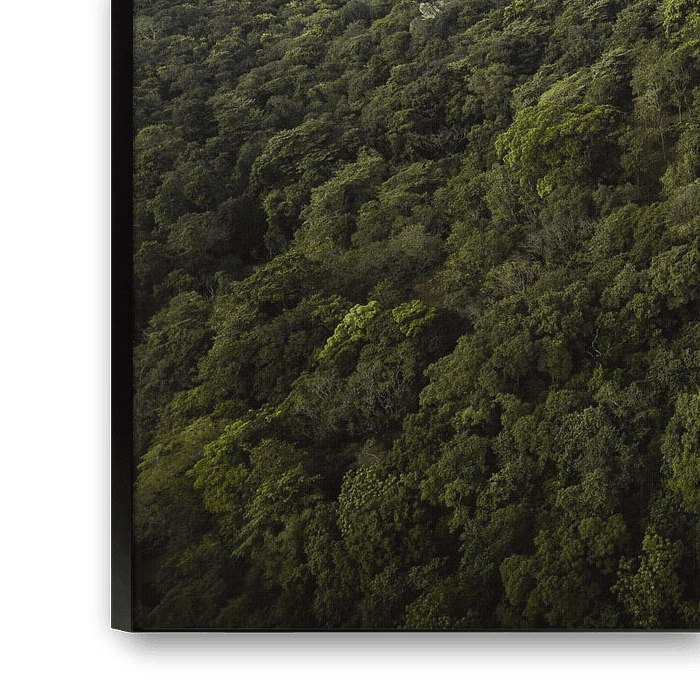 An aerial view of Sri Lanka’s Lion’s Rock, with its ancient fortress ruins rising sharply above the jungle. This wide composition shows the full shape of the rock and the landscape around it.