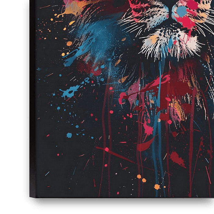 Buy this landscape artwork Lion with paint splashes on black background by MNS Designs on canvas, ArtFrame, poster and wallpaper, printed on demand in high quality.