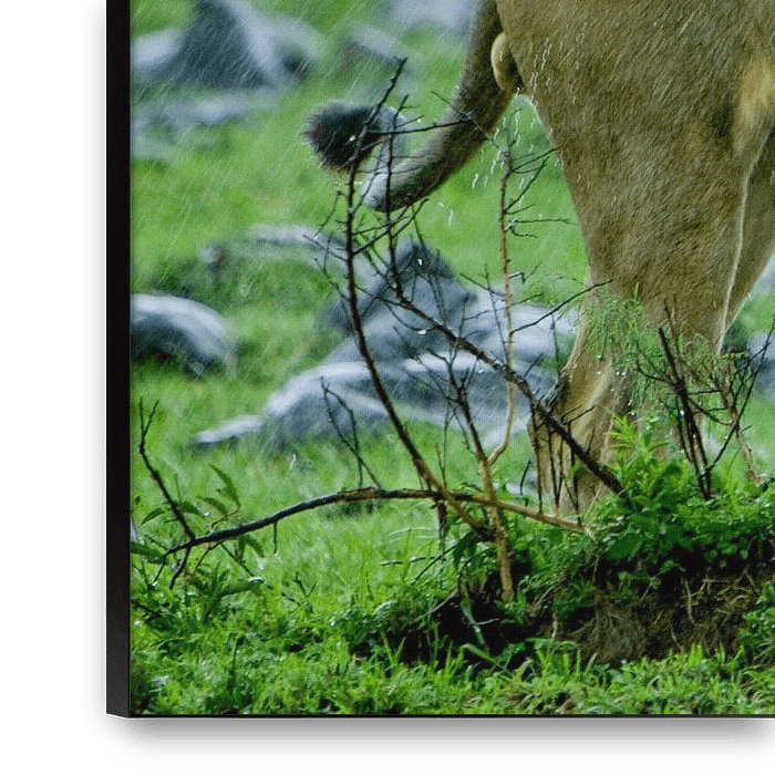 Buy this lion art Lions in the rain by Peter Michel on canvas, ArtFrame, poster and wallpaper, printed on demand in high quality.