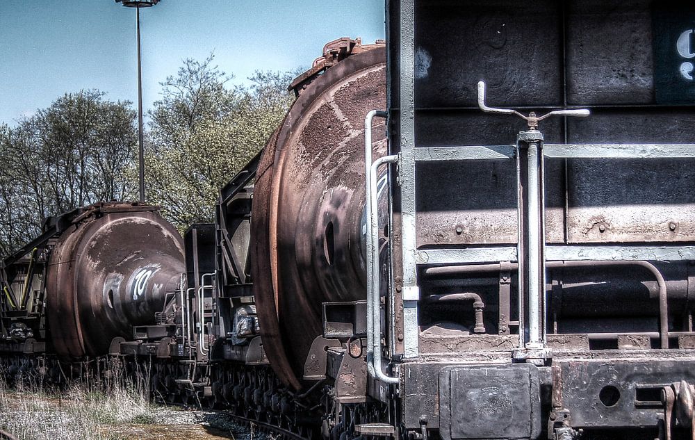 Deze trein werd gebruikt om kokend staal te vervoeren van de ene kant naar de andere kant van het industrieterrein