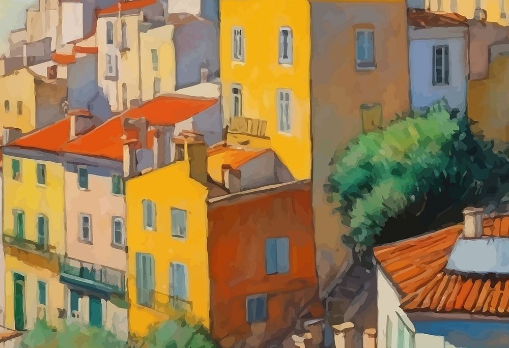 The Alfama district spills down Lisbon’s hillside in a cascade of terracotta rooftops and sunlit pastel walls. Impressionist brushwork captures the maze of narrow streets, balconies, and tiled facades glowing in the late afternoon light. The Tagus River sparkles in the distance, framed by the warmth of the city’s historic charm. This piece radiates life, color, and the inviting spirit of a place where every corner tells a story.