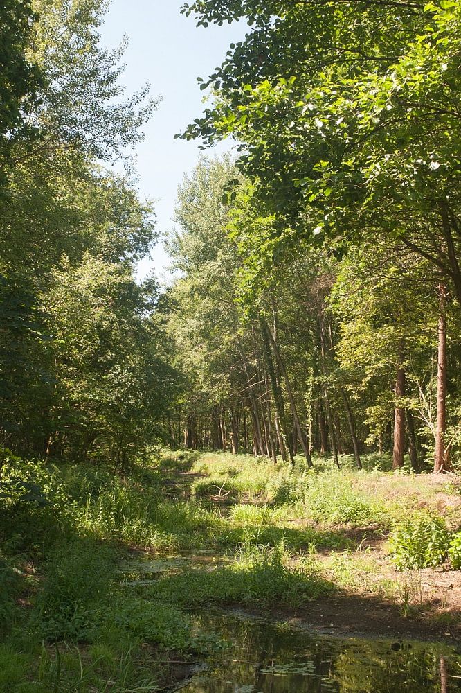 Barneveld The Netherlands Small Barneveldse Beek brook meandering through the Dutch countryside. Being slightly higher than elsewhere in the country, the lower countryside is less characterised by dikes and water windmills.
