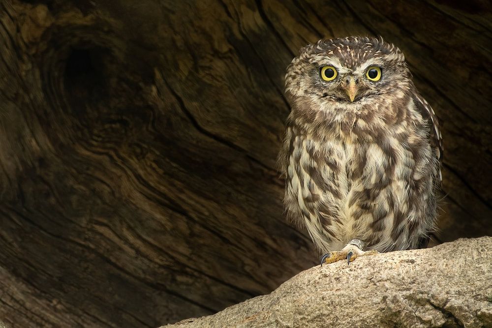 Small but so beautiful, little owls. With its big eyes, this adult little owl looked towards my lens, sitting veilely in the opening of its tree cavity. This photo was taken around Wageningen.