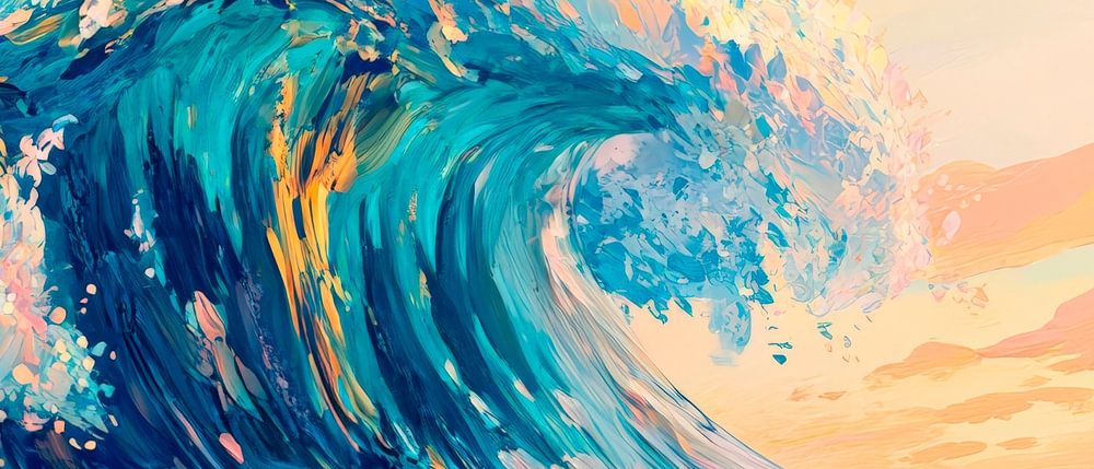 A powerful wave breaks majestically in vivid shades of blue, while the warm colours of the sunset illuminate the sky. This dynamic depiction embodies both energy and tranquillity, adding a fresh, relaxing atmosphere to any room. Perfect for the living room to create a maritime mood.