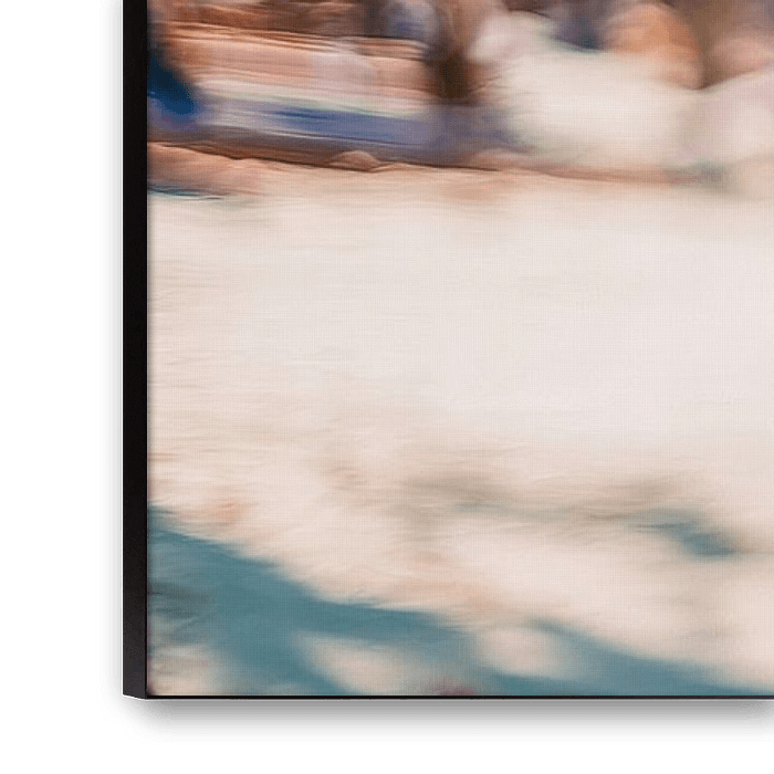 A cheerful llama enjoys his beach holiday in stylish sunglasses and a colourful shirt, surrounded by a gorgeous coastal backdrop. This lively scene brings a holiday mood and good humour and is perfect for the living room or a creative workspace to spread inspiration and joy.
