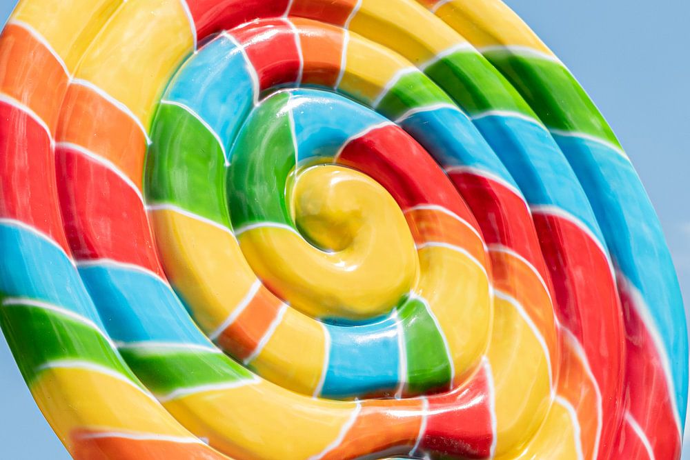 At a pancake house, this huge lollipop stands at a play attraction. It jumps out so nicely when it comes to colours. You get a spontaneous appetite for a sweet treat. However, this one is only for decoration and not edible. Nevertheless, the illusion that it is real is enough to enjoy it!