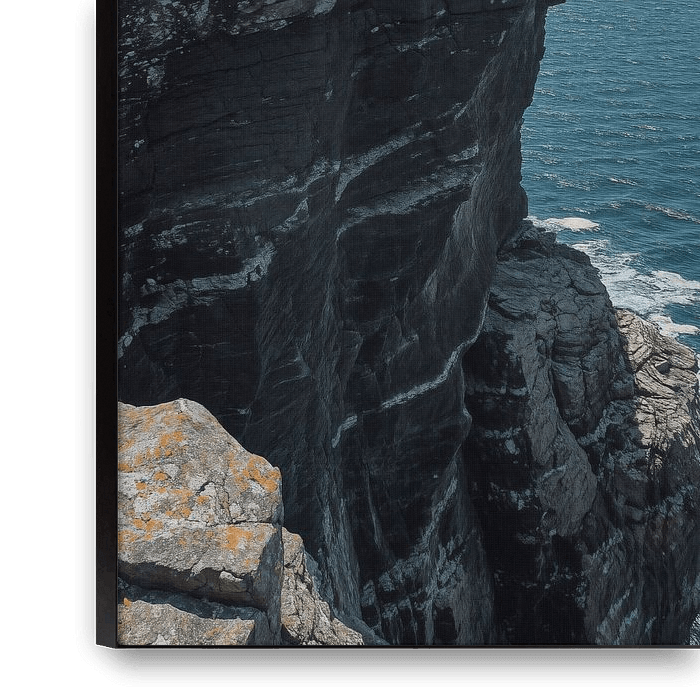 Buy this digital art artwork Lone Figure on Rugged Cliffs Above the Sea by Transmutation Art as a reproduction on canvas, ArtFrame, poster and wallpaper, printed on demand in high quality.