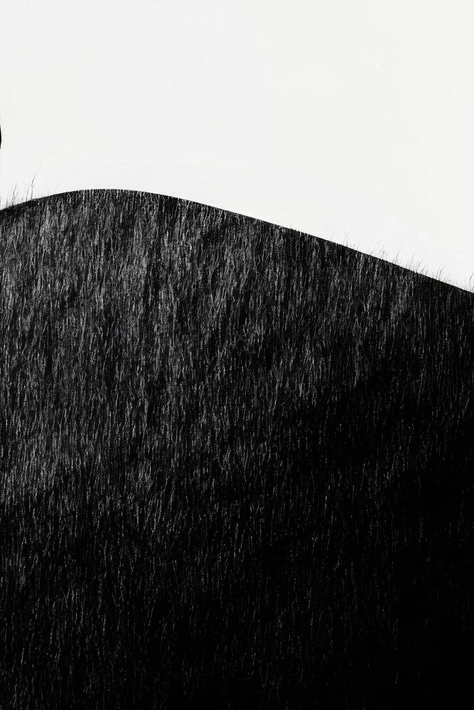 The picture shows a solitary figure standing majestically on a gentle hill, surrounded by a contrasting black and white horizon. The curved line of the hill emphasises the isolation and peace of the scene, while the silhouette of the person radiates a mysterious attraction that encourages reflection.