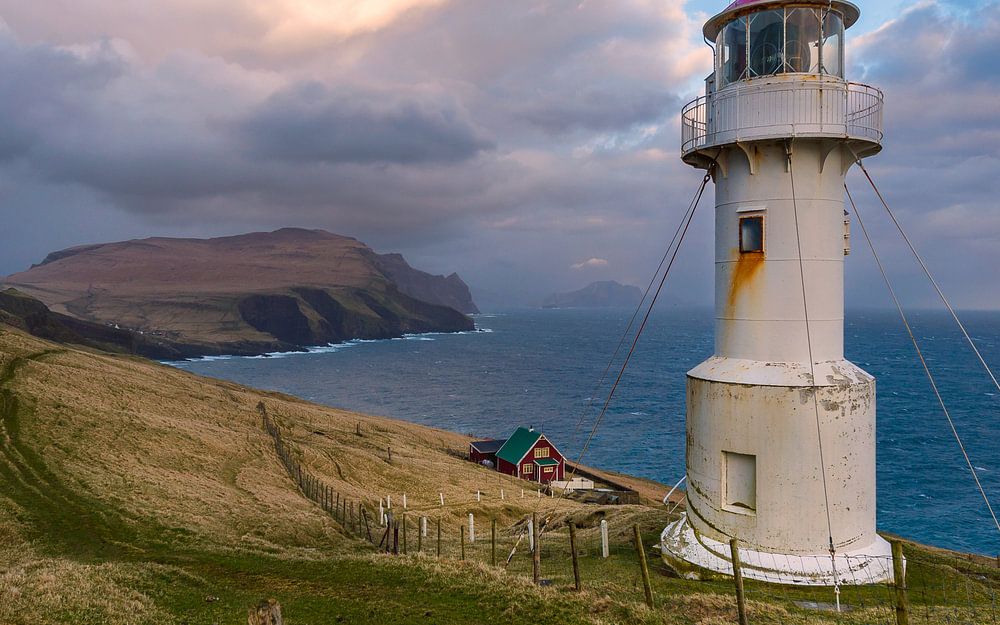 Lonely lighthouse on the island of Mykines, Faroe Islands, Denmark