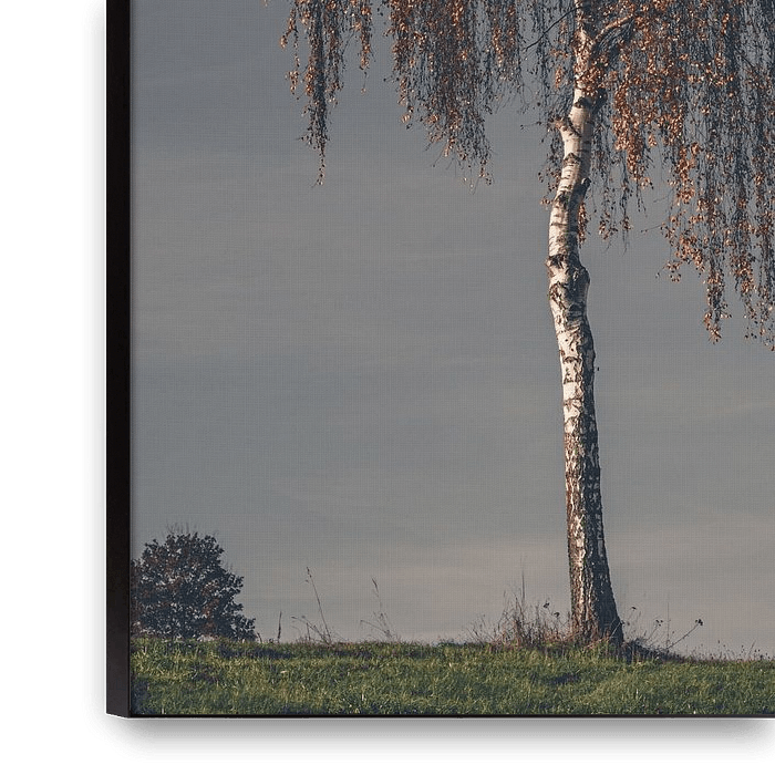 Buy the photo Lonely Silver birch tree in autumn colors by Attila Gimesi on canvas, ArtFrame, poster and wallpaper, printed on demand in high quality.