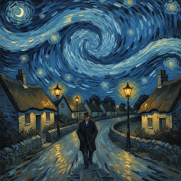 Buy this painting Lonely Walk Under the Starry Night by Aden Pink Studio as a reproduction on canvas, ArtFrame, poster and wallpaper, printed on demand in high quality.