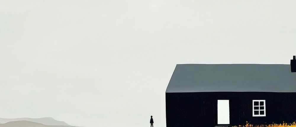 Amidst rolling hills and golden grasses sits a minimalist black house that radiates peace and space. The delicate contrast between black and the natural earth tones conveys a feeling of solitude and peace. A perfect piece of art for the living room to create a harmonious, relaxing atmosphere and inspire conversation.