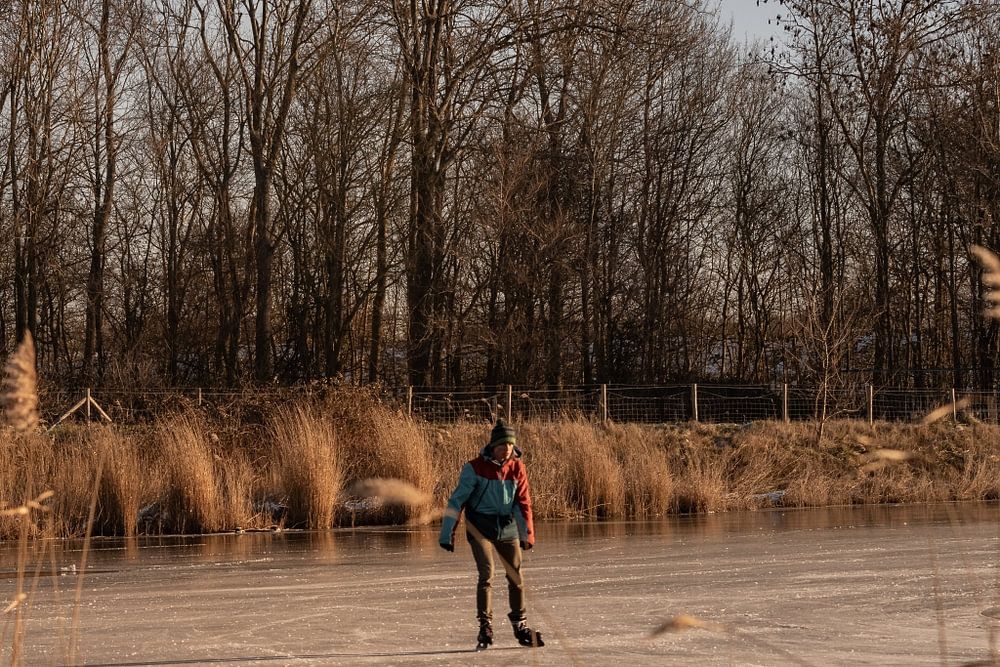 Buy the photo Lonely skater on the ice in Veere by Percy's fotografie on canvas, ArtFrame, poster and wallpaper, printed on demand in high quality.