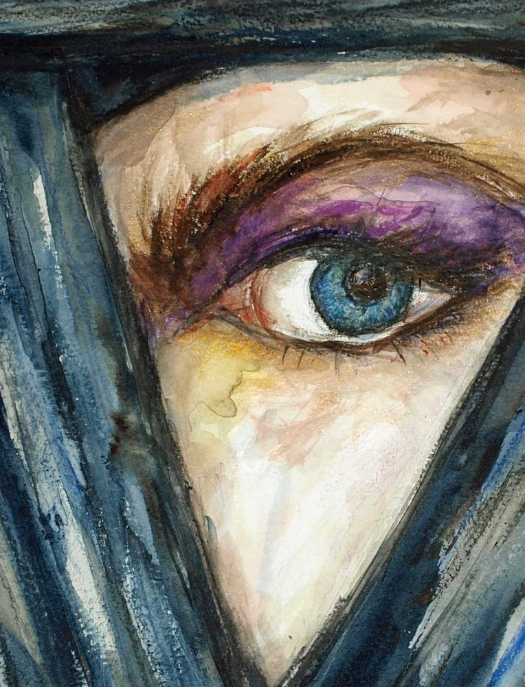 Watercolor painting of an eye that looks forward to the future. A future with peace and health. The future is often uncertain and we do not know what the future will bring us. Expectation, uncertainty, joy, fear that's all hidden in the future.