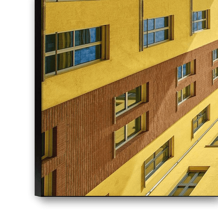 Buy this abstract artwork Looking up in Berlin yellow by Jenco van Zalk on canvas, ArtFrame, poster and wallpaper, printed on demand in high quality.