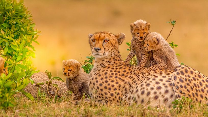 During a photo safari through the Masai Mara in Kenya, I took this stunning photo of a cheetah mother with six very young cubs. It is no ordinary photo, partly because the number of very young cubs is quite high, and partly because the cheetah mother is the world-famous Malaika.