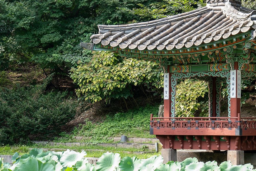 Pond with lotus plants at imperial palace in Seoul South Korea