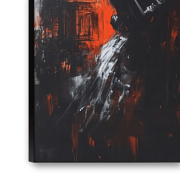 Love couple - This is an abstract love painting depicting a man and a woman in a passionate embrace against a vivid background of red and black tones, creating an intense and dramatic atmosphere.