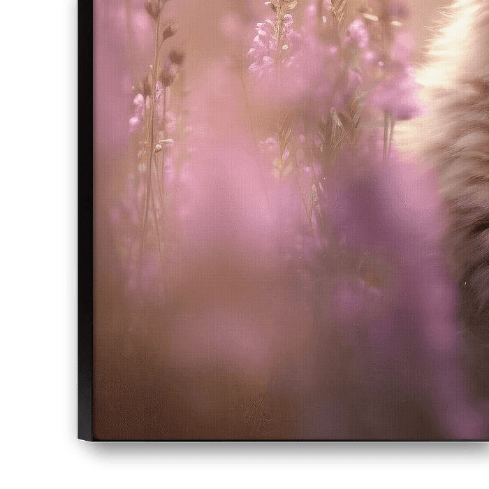 The weather is lovely, the sun shining brightly. A young girl goes out into the country, to a meadow full of field flowers. She is closely followed by her red-headed kitten and lovingly sits down to assist her in picking.