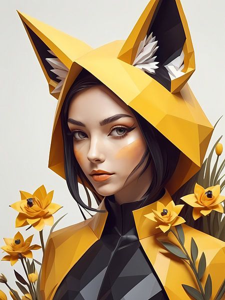 About ‘Low poly floral fox girl, black and yellow’ by 1xMerch