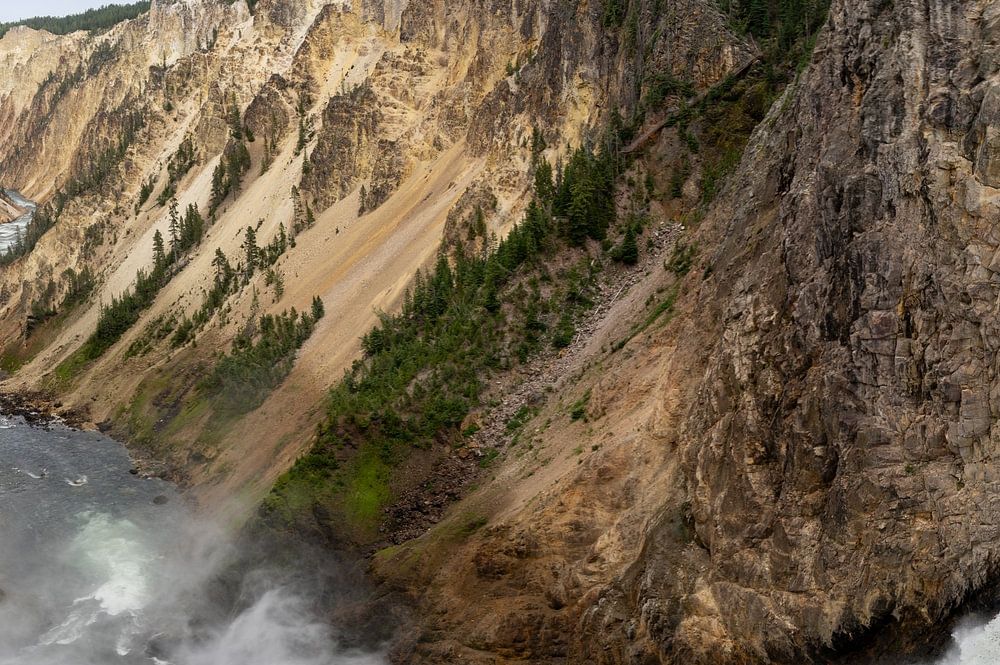 Lower Falls, the largest waterfall in Yellowstone, is undoubtedly the most famous in the park. The 308-metre-high waterfall is probably the second most photographed spot in Yellowstone, with Old Faithful Geyser in first place. There are numerous views of the falls from both the east (Inspiration Point, Grandview Point and Lookout Point) and west (Artists Point) sides of the Grand Canyon, and most of them require only a short hike or virtually no hiking to see. The trail to the top of the Falls (3/4 of a mile around, but steep with many switchbacks) is a must, as the experience of standing on top of the Falls is one of the most breathtaking experiences in the entire Park.