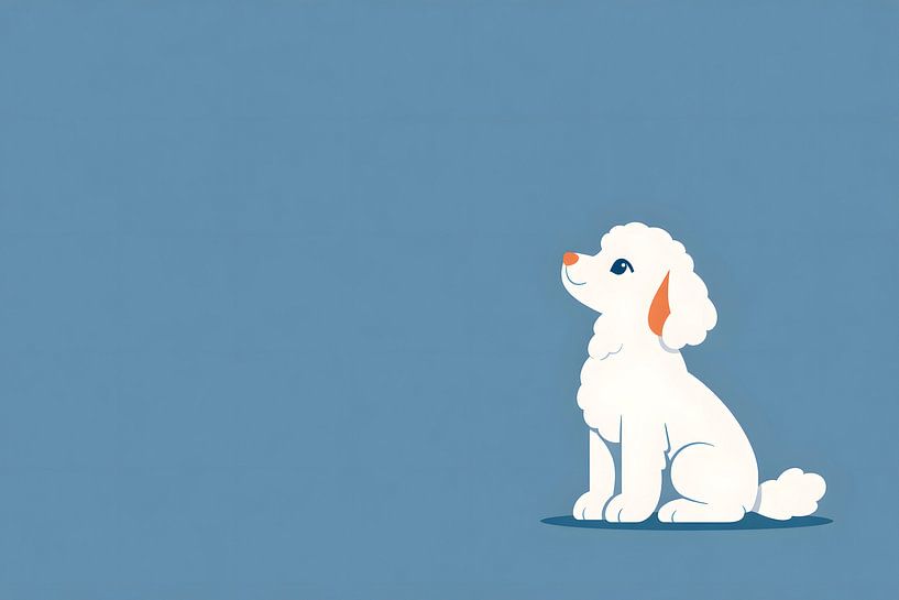 This charming picture captures the essence of purity and gentle affection. In the foreground sits an adorable poodle, whose soft, curly coat and slightly reddish ears immediately catch the eye. The dog's attentive upward gaze conveys the impression of a loyal and devoted soul. The subtle, calm background emphasises the purity and…