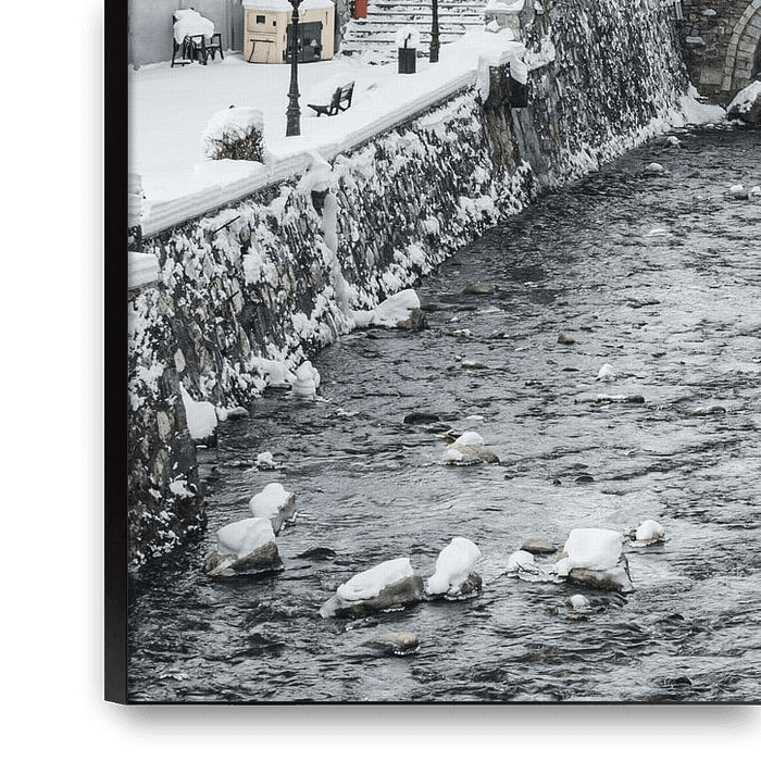 Buy the photo Lumbardhi river in the old town of Prizren, in Kosovo with the ancient stone arch bridge by Besa Art on canvas, ArtFrame, poster and wallpaper, printed on demand in high quality.