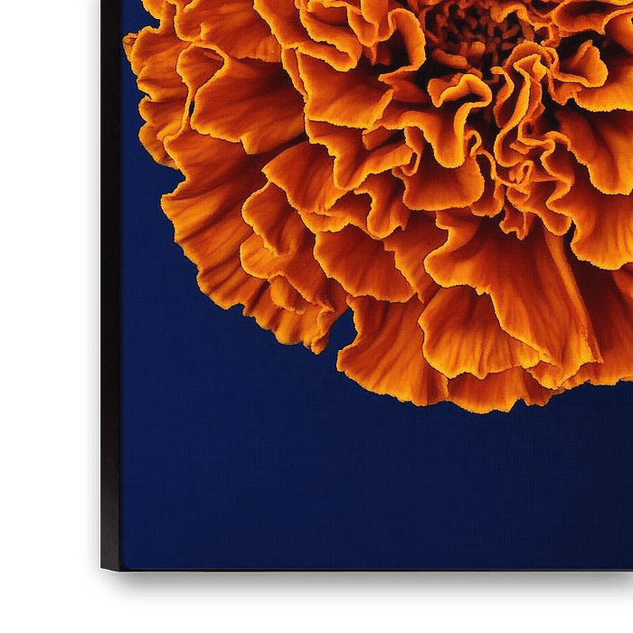 A bright orange petal unfurls in majestic waves and radiates a warm, inviting atmosphere. The detailed texture and rich colour intensity add a sense of vibrancy and elegance to any room. Ideal for the living room, where it inspires conversation and creates a harmonious mood.