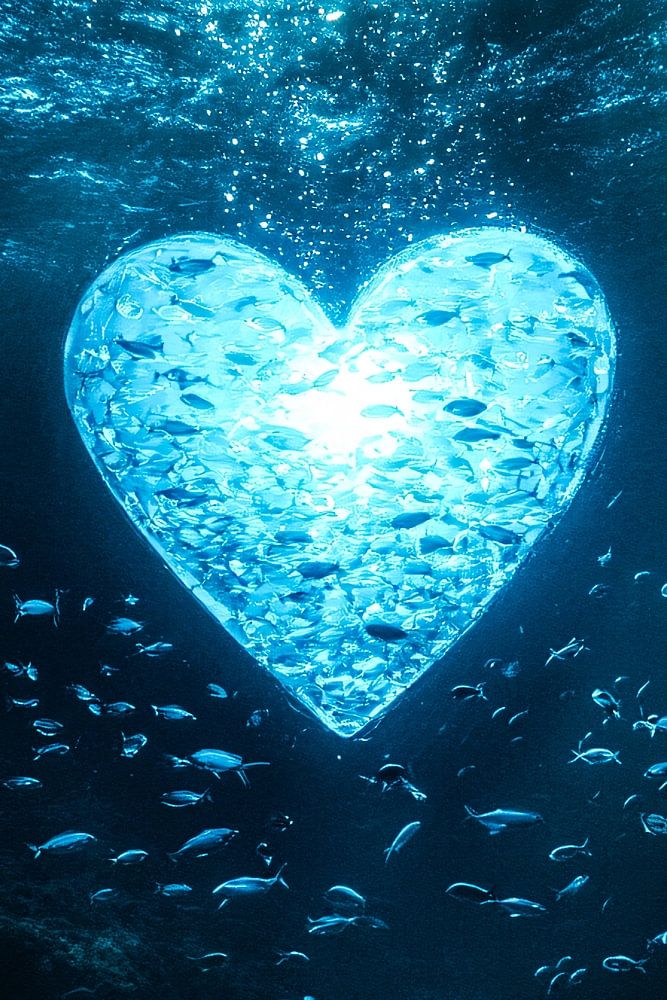 This unique artwork shows a beautiful, luminous heart floating underwater, surrounded by schools of fish. The mesmerising rays of light breaking through the surface of the water create a magical atmosphere that is both soothing and inspiring. This design brings a sense of serenity and connection with nature, ideal for lovers of modern and surreal art. Perfect for spaces such as a bedroom, office or hobby room, where it makes a calming yet impressive statement. The combination of blue and turquoise tones with the dynamism of the fish and the brilliant heart make this artwork a striking decoration piece.