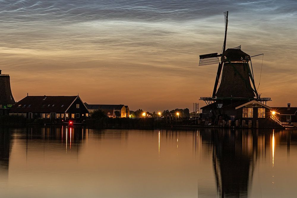Imagine a balmy summer evening, the sky deep blue with a supernatural glow. Above the world-famous windmills of Zaanse Schans, the rare and mysterious luminous night clouds dance. This spectacular natural phenomenon, consisting of ice crystals 80 kilometres high, is only visible during a few weeks in June and July, just after sunset on the northern horizon. They are the tallest clouds on Earth, as well as the most mysterious.