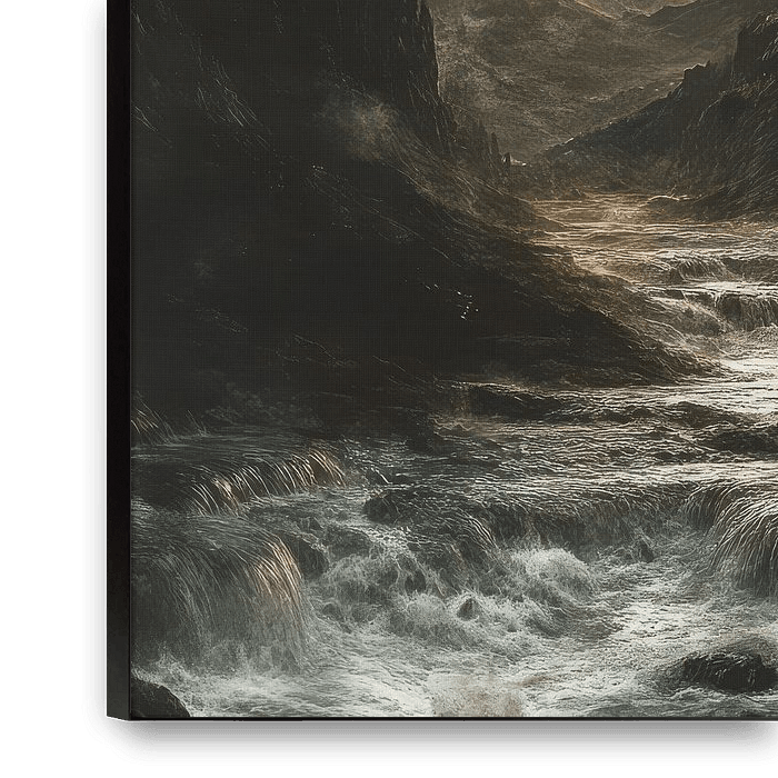 Beneath a colossal, burning moon, a primeval wolf emerges from the heart of the mountains—its howl echoing through a desolate, storm-swept canyon. The rivers churn with fear, and the sky splits under celestial tension. This dark fantasy piece captures the moment before a forgotten force reclaims its dominion, blending nature’s fury with…