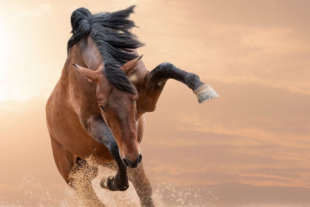Prachtige Lusitano hengst tijdens zonsondergang.