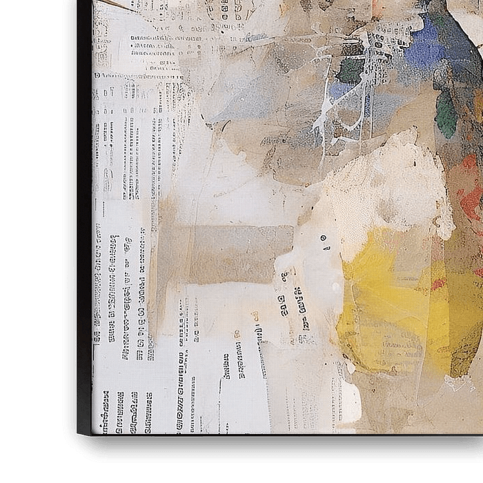 Lynn Portrait - abstract painting / mixed media art painted. Nice contrast between sophisticated portrait and raw collage/painting technique.