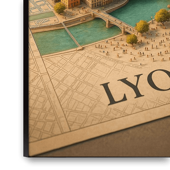 Buy this landscape artwork Lyon Confluence 3D Map – Historic French City Wall Art by Travel Shop on canvas, ArtFrame, poster and wallpaper, printed on demand in high quality.