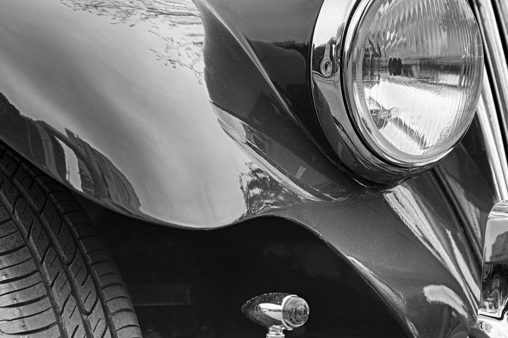 This timeless black and white photo shows the front end of a classic MG TF 1250, a legendary British roadster from the 1950s. The MG TF 1250, built between 1953 and 1955, is considered one of the most beautiful representatives of MG's T-series. In this picture, the striking features of the car are perfectly showcased: The characteristic radiator grille with the distinctive MG logo and the elegantly curved wings reflect the charm and elegance of the era. The black and white photography gives the picture a nostalgic, historic look and immerses the viewer in the golden era of automotive engineering. Perfect for classic car enthusiasts or fans of classic design. This picture is ideal for any interior that wants to add a touch of vintage charm or automotive history. Available as a high quality print-on-demand, a unique piece for car enthusiasts and collectors of historic vehicles.