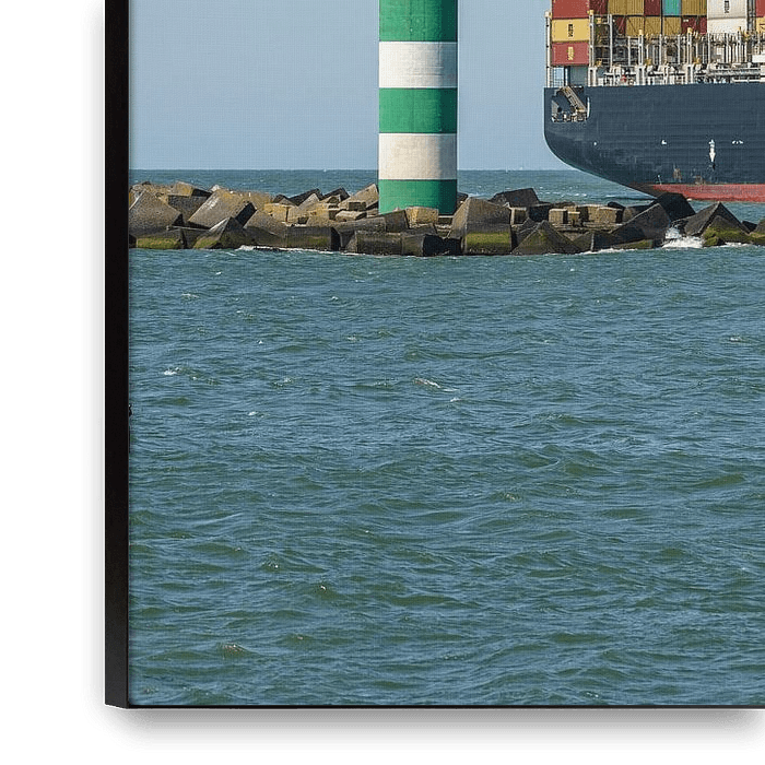 Maximum cargo capacity is 9,200 TEU. This photo was taken at the entrance to the Port of Rotterdam from the…