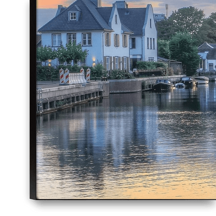 Buy the photo Maarssen golden sky over the Vecht by Jaap Oosterhoff on canvas, ArtFrame, poster and wallpaper, printed on demand in high quality.